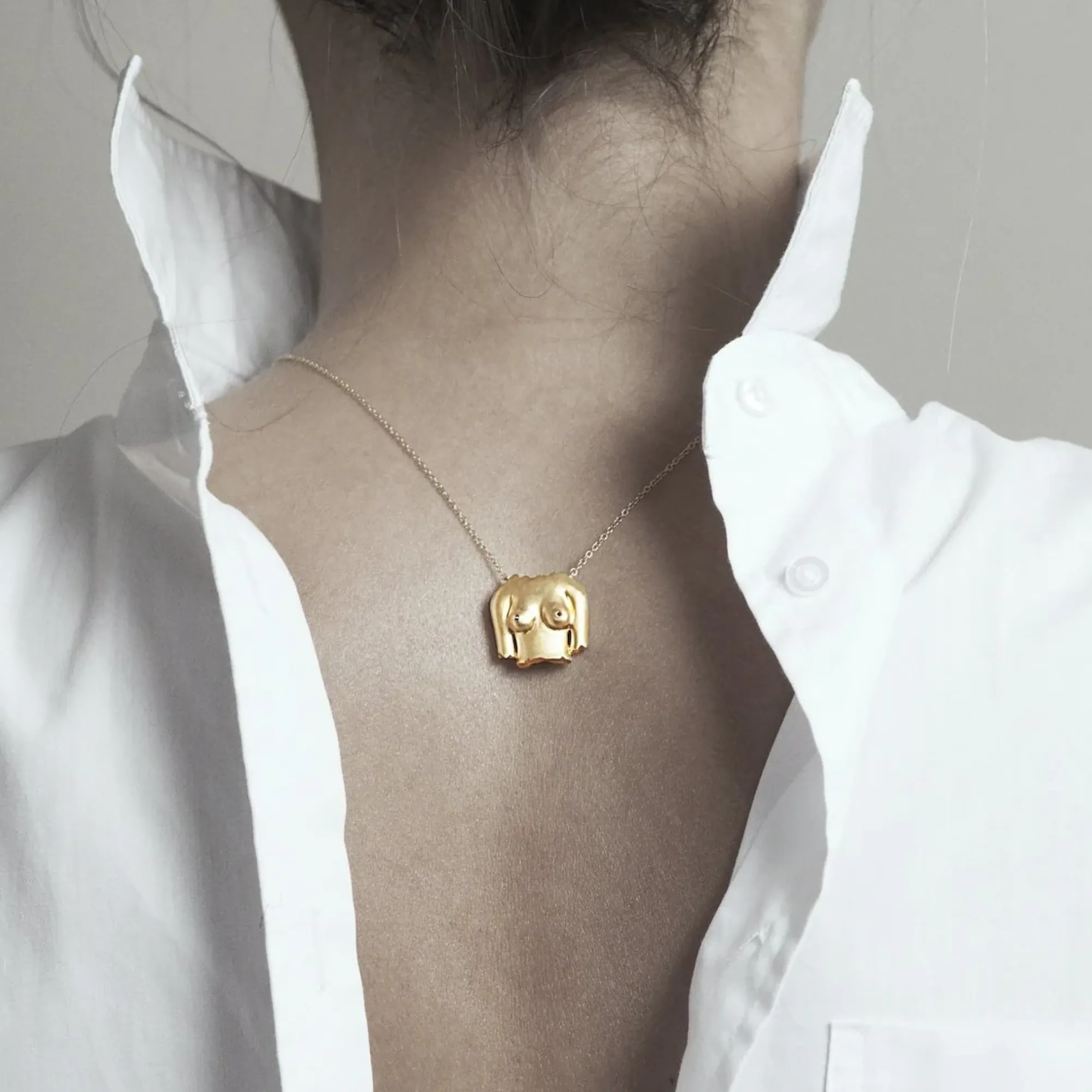 As A “Celebration Of Womanhood”, This Necklace Is Crafted From Gold Plated Silver And Dotted With Shimmering Rubies On The Bust-Shaped Pendant.